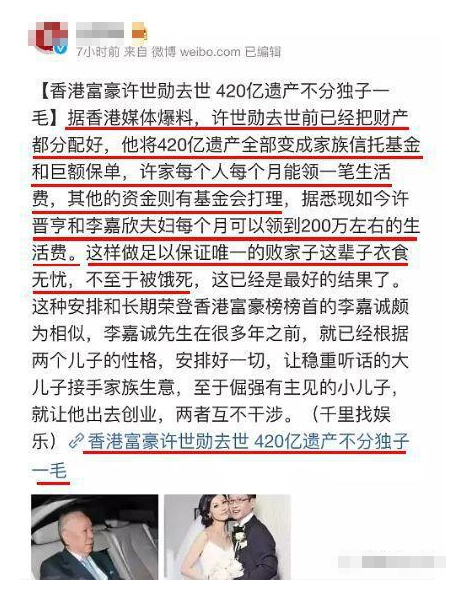 许家420亿家产,全部归信托基金代为管理。
