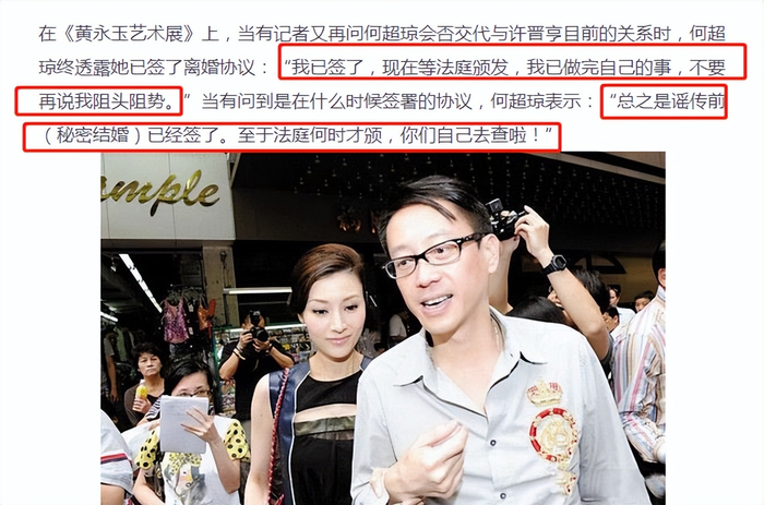 2000年在《黄永玉艺术展》上,当有记者再问何超琼会否交代与许晋亨目前的关系时。