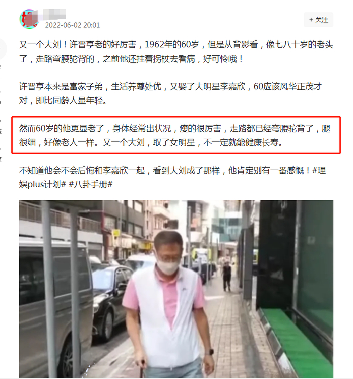 2022年,香港记者拍到了许晋亨拄拐就医的画面。