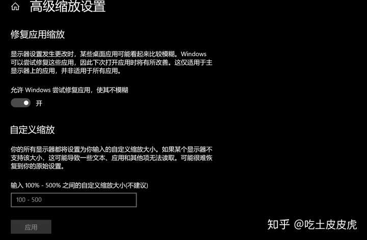 【高级缩放设置】开启后,大部分常用软件的模糊会消失,连多屏幕的时候,有奇效