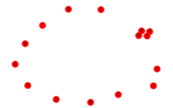 图中所有的节点 ['1', '2', '3', '4', '5', '6', '7', '8', '9', 0, 1, 2, 3, 4, 5, 6, 7, 8, 9, <networkx.classes.graph.Graph object at 0x00000240082AE390>] 图中节点的个数 20