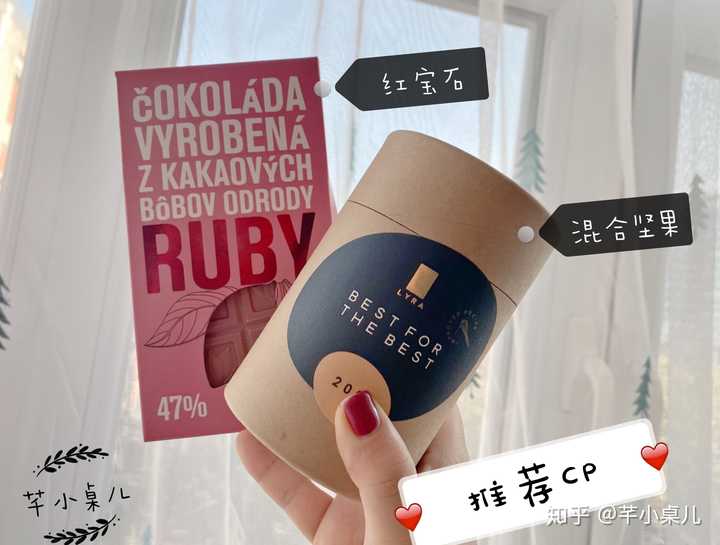 粉红的颜色,来自于特殊的可可品种Ruby [1] 。 非色素添加 。是可可豆在发酵时会渗出红宝石一样的颜色,这种颜色最后也保留在巧克力中,让巧克力呈现出自然温柔的粉红色。