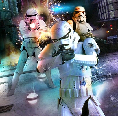 在9ABY,索龙又一次出现,而这一次他身边有一群暗夜士兵。这群士兵的盔甲较传统的冲锋队有明显区别, 似乎十分强大。不过接下来的故事证明他们是一群小丑,什么活死人军团,活死人死亡士兵,全部都成为索龙勉强离开的人肉护盾。然而,索龙的冲锋队一直是这样的吗?答案是否定的。在传说宇宙中,作为索龙军事理念的具体实践成果,他的手之帝国501军团 (此501军团非彼501军团,我们平常说的那个是大共和军和帝国冲锋队的,这里这个是手之帝国的)具有极其强大的实力。