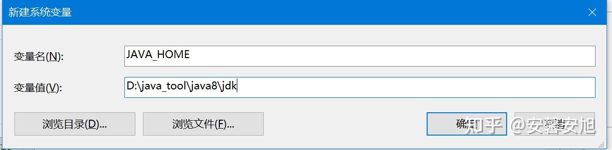 点击系统变量中的新建按钮,添加JAVA_HOME环境变量,变量名称填写JAVA_HOME,变量值填写D:\java_tool\java8\jdk