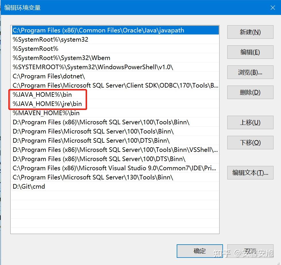 双击打开以后,在列表中分别加入%JAVA_HOME%\bin和%JAVA_HOME%\jre\bin两个变量值。