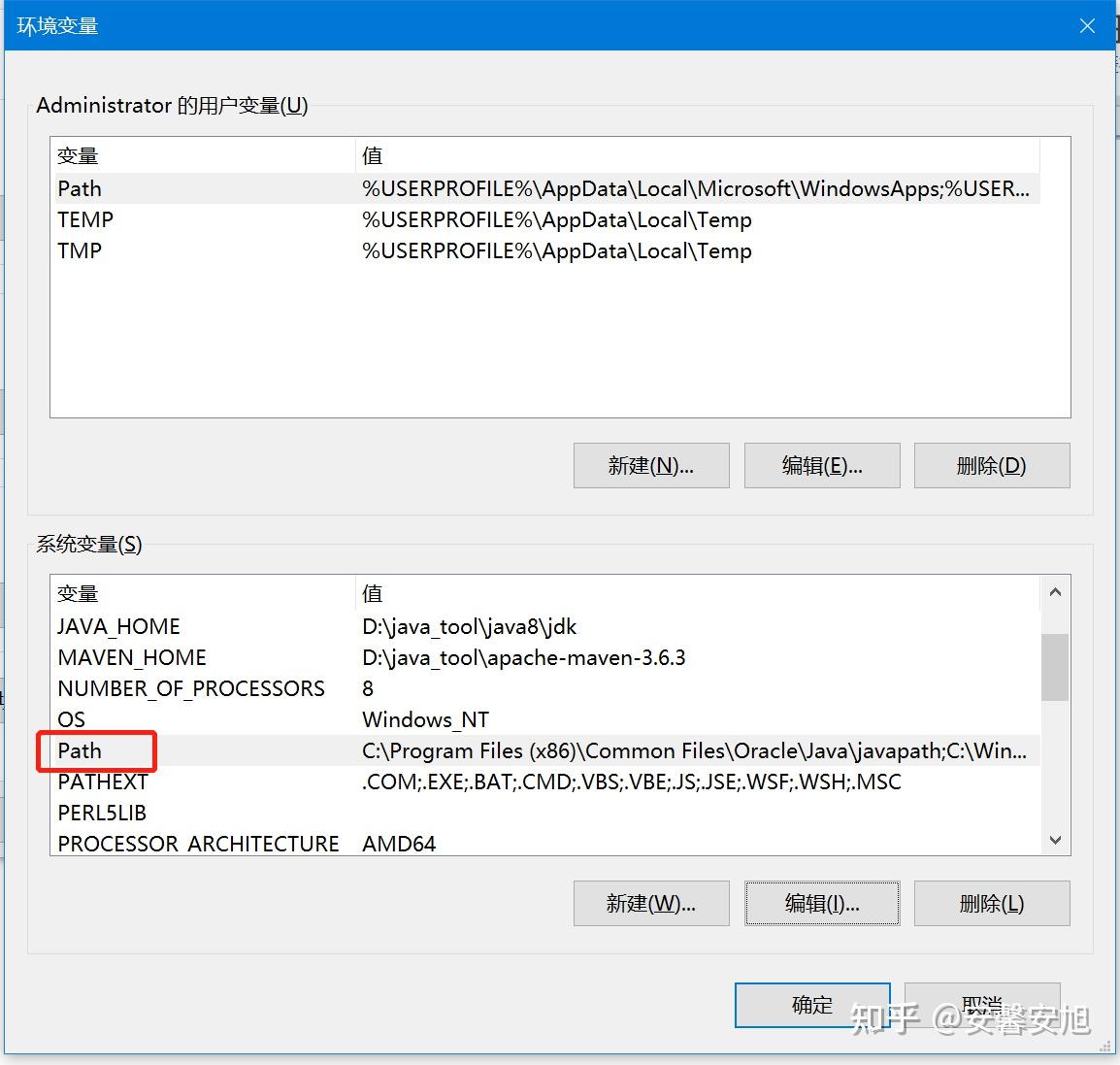 在系统变量里面找到变量名为Path的一栏,双击编辑Path中的值。