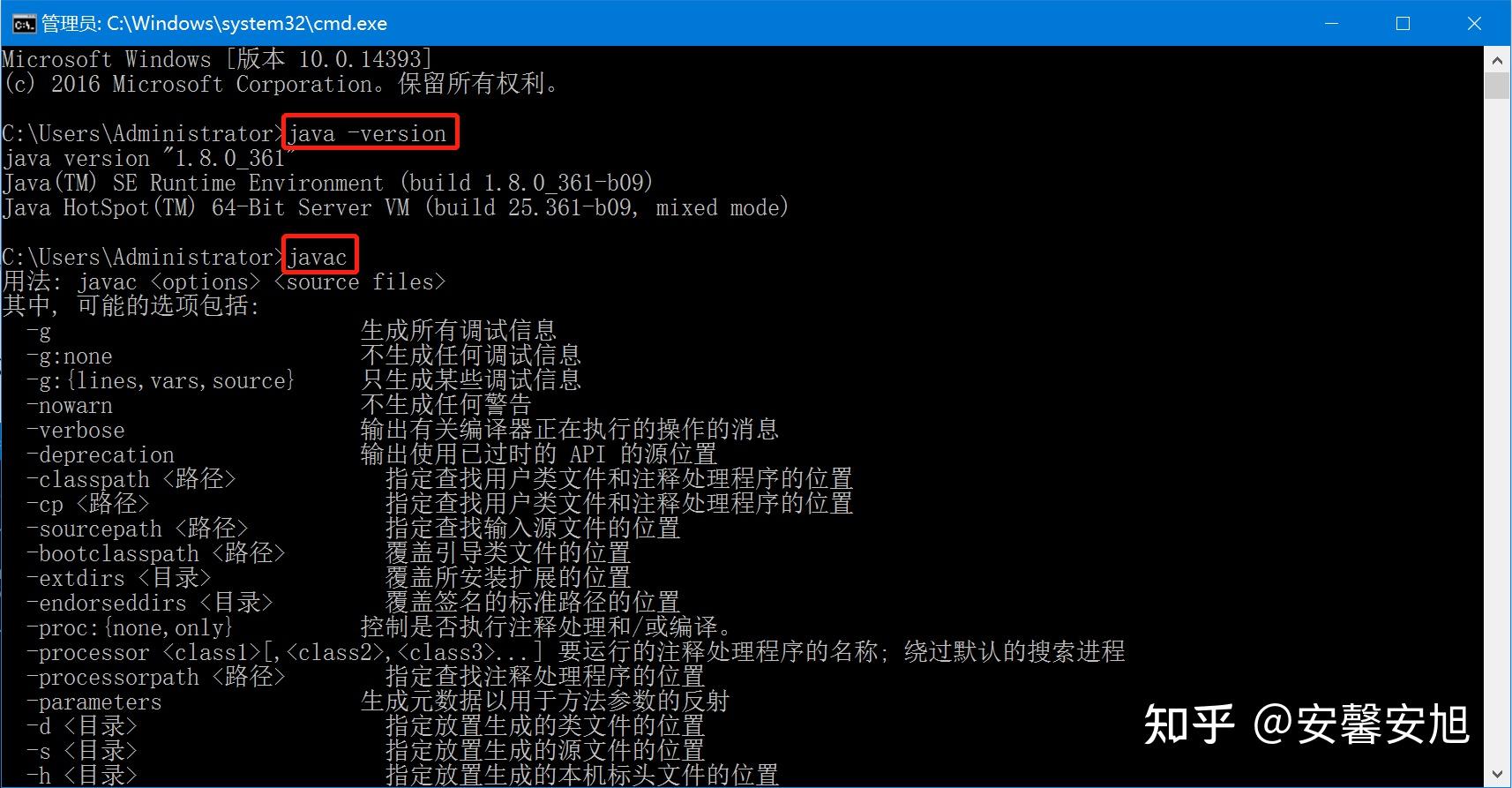 在控制台界面分别输入java -version和javac测试,出现如下界面,说明环境配置成功。