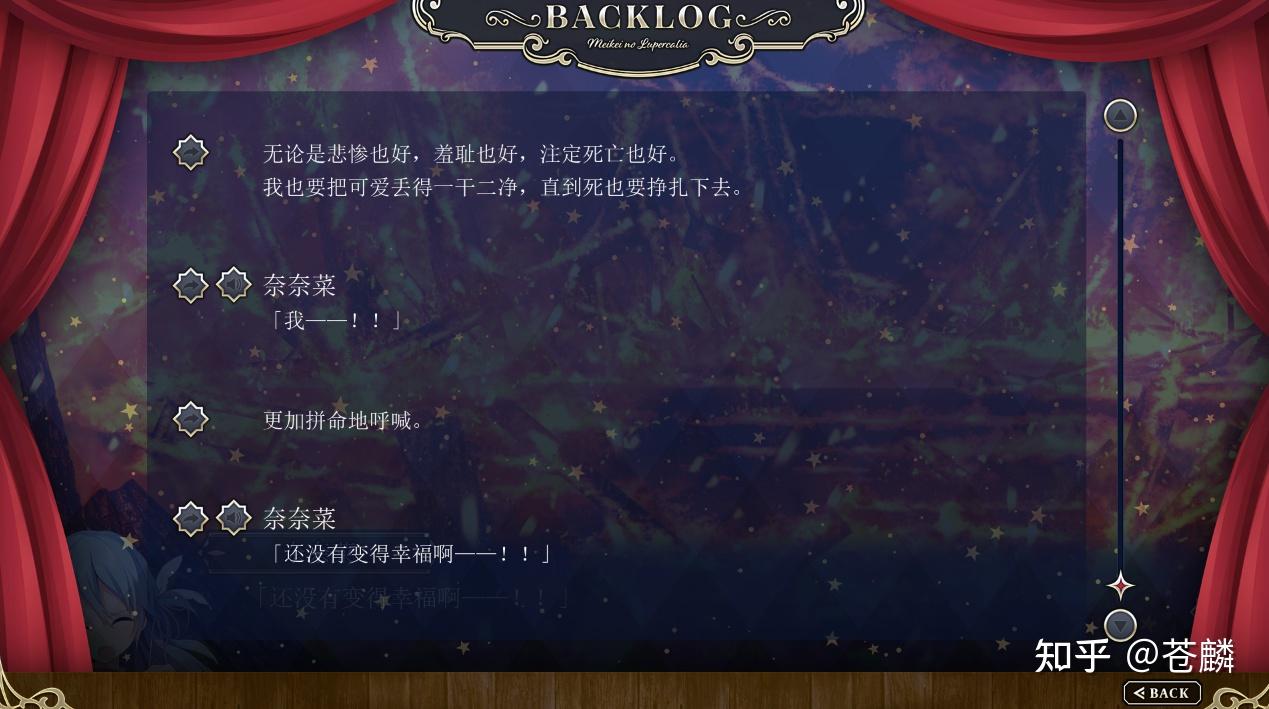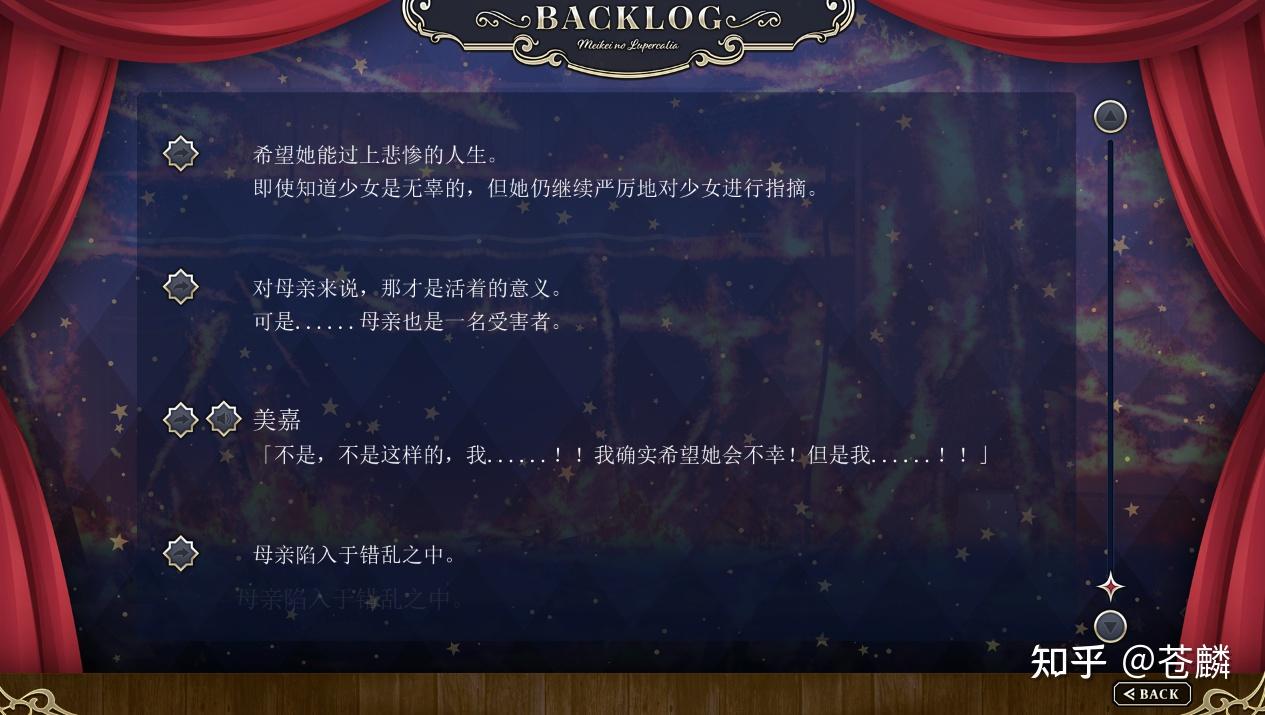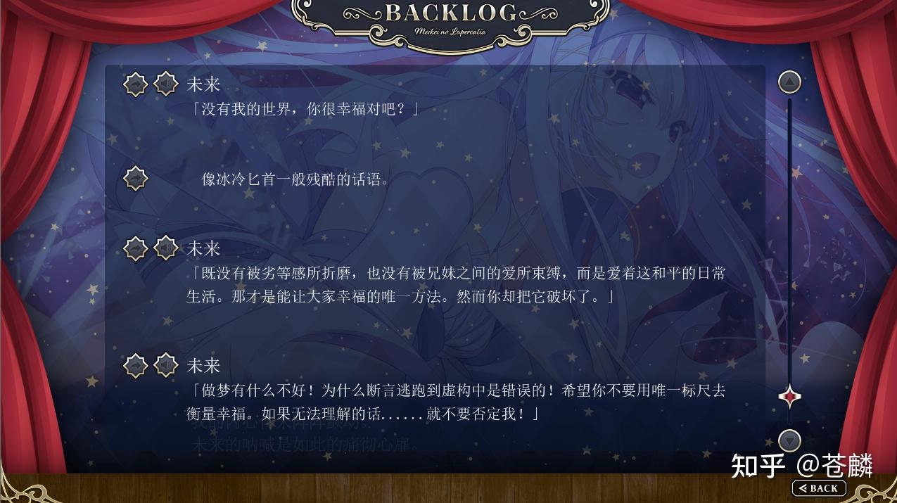 但我们若是一直选择面对现实,那么就会进入最终幕《魔白的彼方》。 在进入最终幕的过程中,层层幕布被拉下,暴露出位于舞台中央最为核心的东西,也就是所谓的‘真相’。