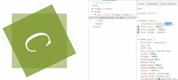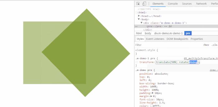 从上面我们学到了很多变形技巧:rotate tranlate scale skew,我们不仅可以一个个使用,也可以组合使用