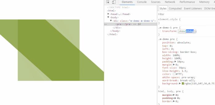 transform:skew(30deg) //y轴向x轴倾斜了30deg