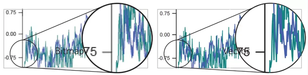 图1 位图(左侧)与矢量图(右侧)的区别。图片来源: Nature -Guide to preparing final artwork。