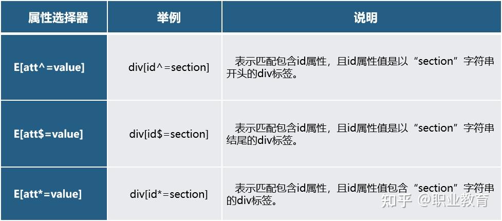 属性选择器是指选择名称为E的标记,且该标记定义了att属性,att属性值包含value的子字符串。需要注意的是E是可以省略的,如果省略则表示可以匹配满足条件的任意元素。