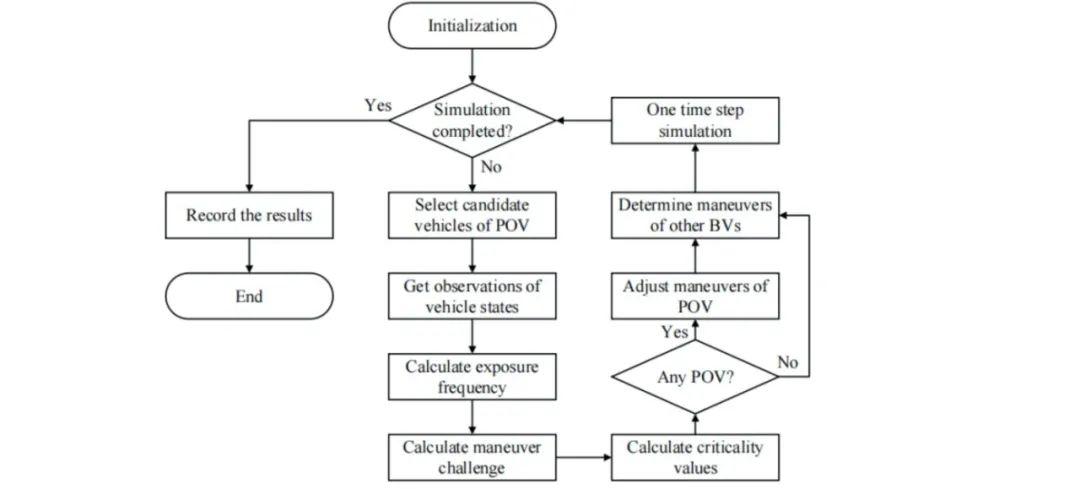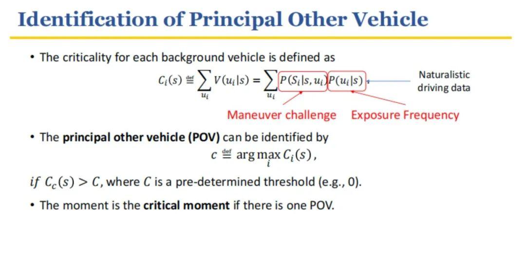 上图中,NADE通过关键度指标定义了关键车辆(POV),通过关键车辆出现的时间确定了关键时刻,通过对关键车辆进行调控来实现高效测试。