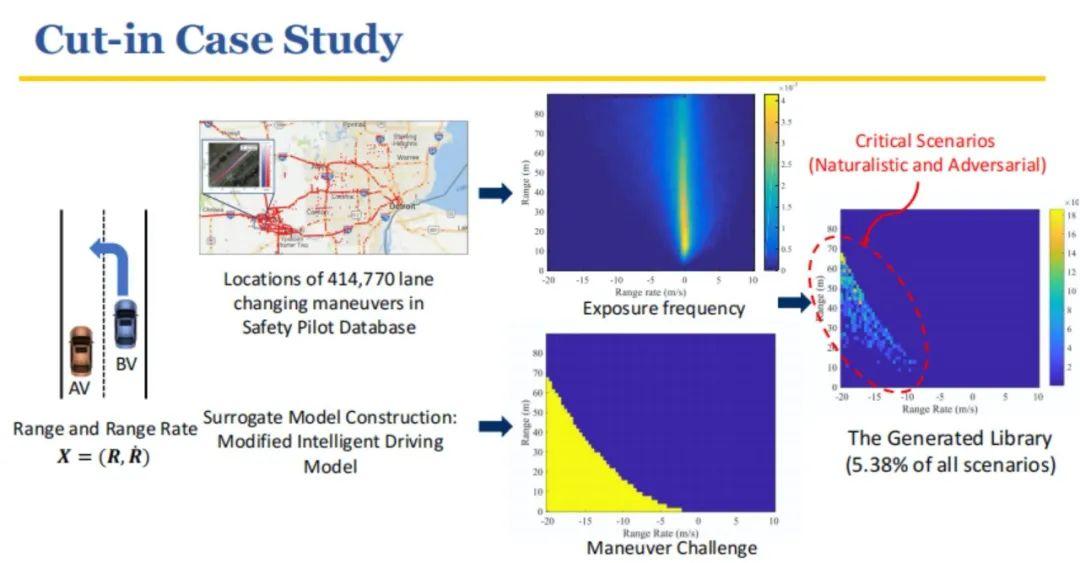 智能测试的关键在于定义了测试关键度评价指标,该指标由manual challenge与exposure frequency相乘得到。manual challenge代表给定场景下自动驾驶汽车发生事故的概率,exposure frequency代表给定场景在自然驾驶环境中的概率。