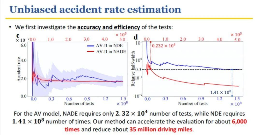 对于自动驾驶汽车测试,我们需要以自动驾驶的事故率作为安全性能的平均指标。我们如果想要获得事故率,一个基本的方法就是把自动驾驶汽车放在自然驾驶环境中测试。测试N次,如果发生了M次我们想要的感兴趣事故,那么事故率的估计就是M除以N。其背后的数学原理是一个蒙特卡洛估计,但使用蒙特卡洛方法进行测试具有严重的低效性。