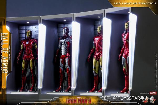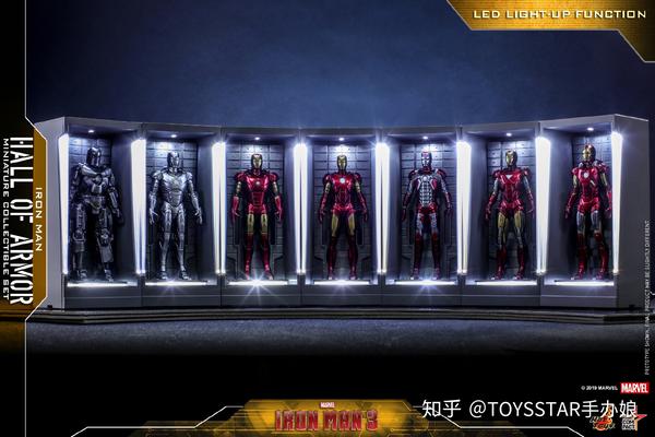 前面展示的7款 HotToys 迷你装甲格纳库,可以自由组合还原《钢铁侠》中帅气的场景。每款迷你装甲格纳库虽然只有12cm,但严格按照《钢铁侠3》中斯塔克实验室的细节还原,装甲库上不仅有清晰的结构线条,两侧更设有LED发光灯效,放在家中绝对抢眼!作为礼物也是不错的选择