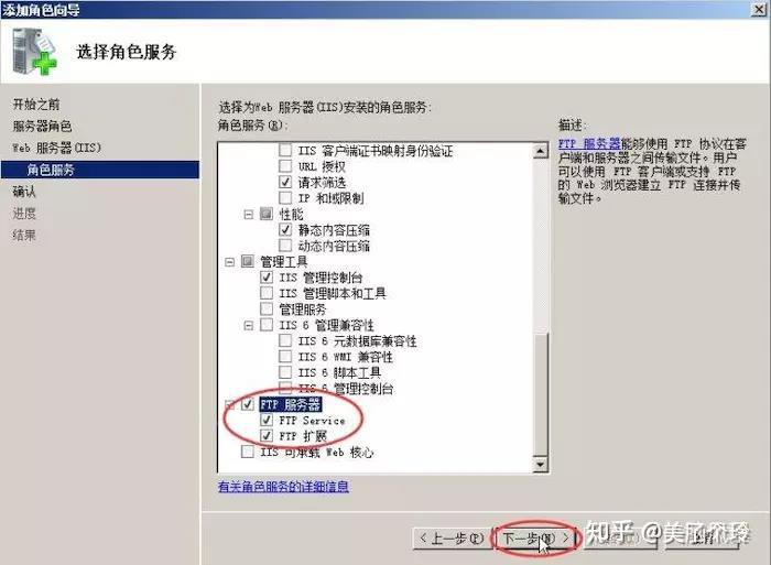 勾选“FTP服务器”,二级菜单也全选中,点击下一步: