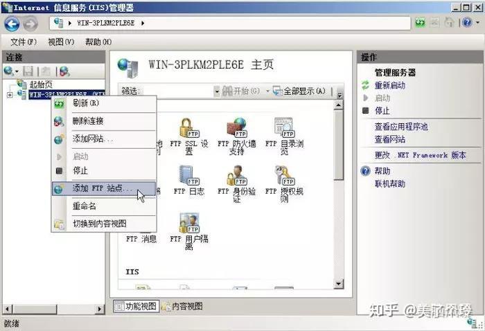 先左键选中用户名再右键找到“添加FTP站点”并点击(如果没有,则FTP安装失败,请重新返回第1步进行配置):