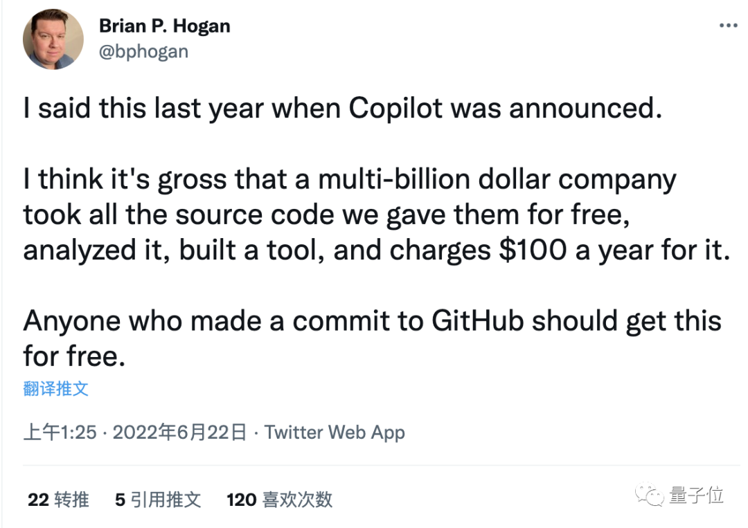 另外还有集中被吐槽的一个点,是Copilot使用开发者写的代码来训练就不应该回过头向开发者收费。