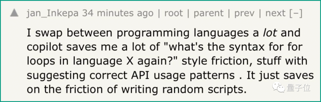 另外有内测用户表示,在频繁切换编程语言时使用Copilot就不用反复查找不同语法,能够节省大量时间。