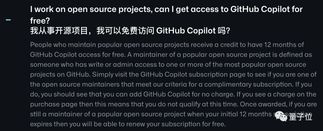 对于热门开源项目维护者 ,GitHub提供12个月的Copilot免费使用权限。