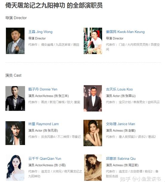 倚天屠龙记九阳神功演员阵容也十分强大,甄子丹饰演张三丰,古天乐饰演的是张翠山,这两个演员也很给力,现在出片的产量都很高,当今的高产演员,特别是古天乐属于量产了,近期片很多,《反贪风暴》这一个片都演了好几部了,我查了一下2022年古天乐就参与了16部电影(很多还没有上映)。还有三位美女演员,文咏珊、云千千、秋意浓,当然我最喜欢的还是袁咏珊,香港第一代嫩模,雪中悍刀行里的徐渭熊,就是帅,最近上升势头比较明显。从导演和演员阵容来看是国内顶级阵容了,客观评价这几个演员的演技都是可以的。