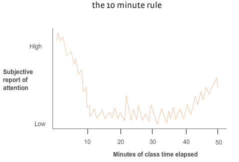 当人们开始看电影时, 前十分钟的注意力是最集中的,随着时间的增加,注意力会逐渐分散。但情绪的唤醒状态会刺激大脑,记住关键点有利于增强注意力。 观众的大脑每十分钟会自行检查一遍信息,如果在这十分钟之内有能够抓住他们的兴奋点,他们就会持续关注这部电影,不会注意力分散,也不会觉得无聊。所以,即使在故事铺陈期的第二幕(详细知识请参见上一期),也必须每十分钟安排一次关键情节的重复或添加一些情绪兴奋点,使观众观影时不会感到乏味。
