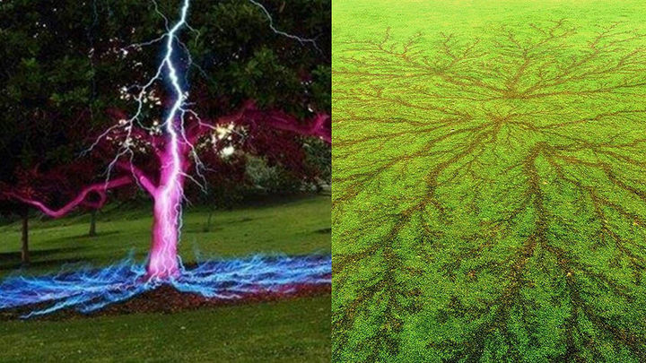 打个比方:当闪电击中一颗树时,电流会以树为中心,向四周蔓延传递,直径可以达到数十米,这也是:为何雷电天不能在树下避雨的主要原因。