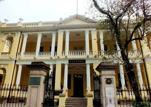 ,建于1890年,是沙面建筑群中的A类文物建筑,全国重点文物保护单位。除了收藏了改革开放以来广东的外事礼品以及重要外事活动的图片外,还特意利用旋转楼梯的空间展示了十多幅百年前的沙面老照片,其中有一幅照片记录下百年前洋务翻译拖着长辫身穿大褂的身影,这幅悬挂在二楼大厅的老照片,不但完整地反映了当年沙面西桥景色,而且可以看到当时行走在英法领事区的洋务翻译依然保留清装打扮。