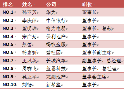 2月28日,“2018中国最杰出商界女性排行榜”新鲜出炉,与往年一样,福布斯以商界女性高管所在企业的营业收入、营运质量、管理人数以及公众影响力等为衡量指标,采取量化的方式对入选的100位商界女性进行排名,最终摘得桂冠的是华为董事长孙亚芳。