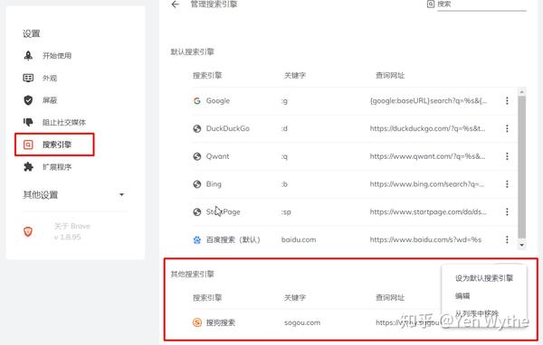 3、设置默认搜索引擎(初始默认谷歌搜索)