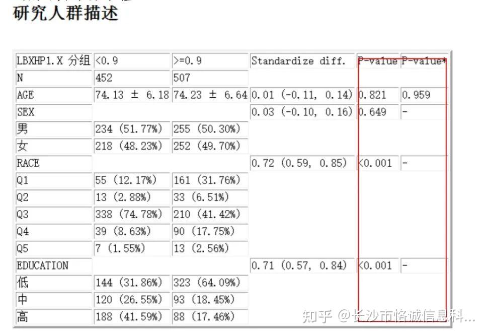 最后两列红框处:是两个P值,两个P值分别使用两种方法得出。一般P值<0.05表示有统计学意义,P值>0.05表示无统计学意义。发文章时: