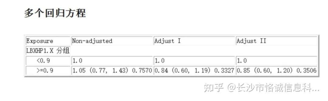 此图中X按分类变量二分组处理:以<0.9这组为参照组,>=0.9组与参照组相比,增加0.85个单位,置信区间是0.60-1.20,p值是0.3506,没有统计学意义。
