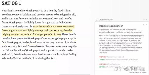 同样是SAT OG 1的那个文本,会员版录入后,给出了以下的修改建议: