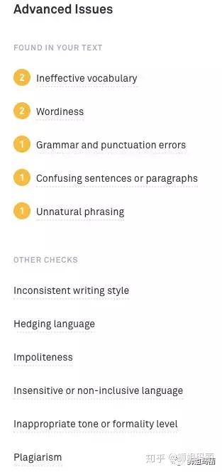 有一点比较好的是,除了直接删除和拼写矫正之外, 还有一些关于语法和写作规范的建议。
