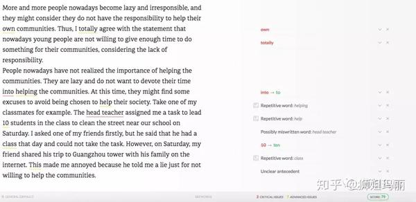 我们来看看grammarly对这类写作给出的建议。