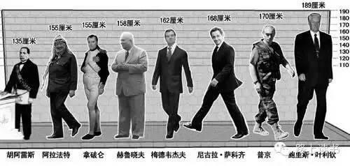 到了如今,身躯伟岸更是提升“理想领袖”形象的重要组成部分。美国的总统中,里根1米85,老布什和克林顿都是1米88,奥巴马也有1米86。甚至苏联在解体后的第一位总统叶利钦,都有1米90,是个绝对的巨人。