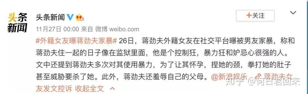 继微博博主宇芽爆出家暴后,这两天,蒋劲夫又传家暴了!
