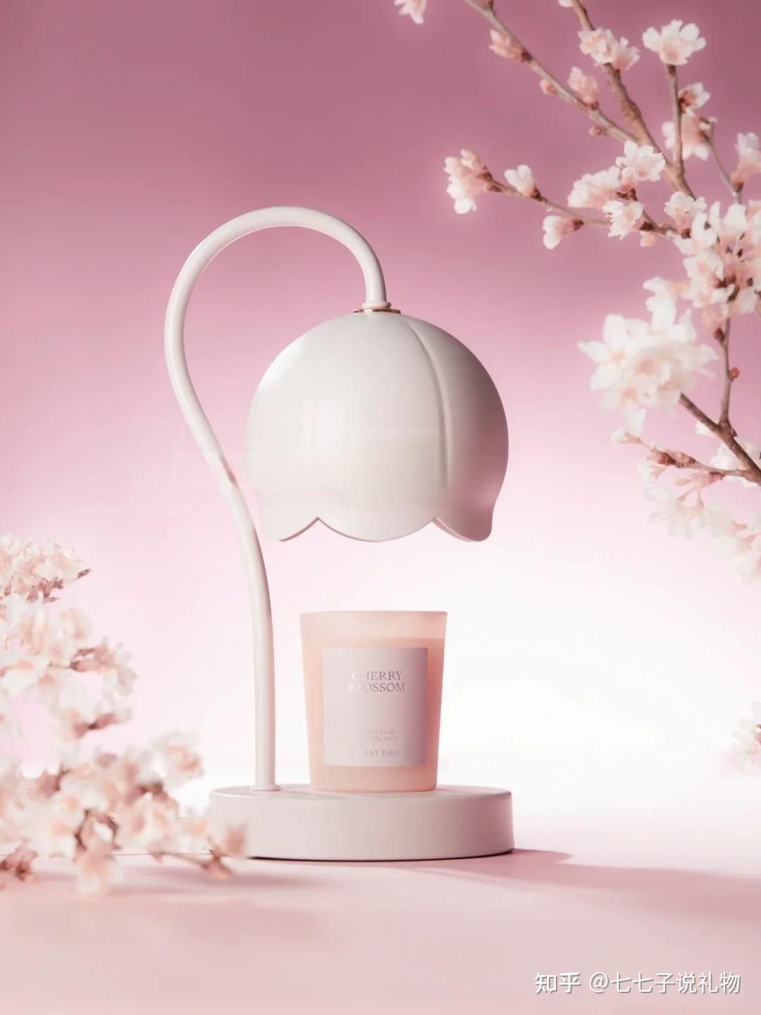 礼盒里面有一个落樱粉的香薰融蜡灯,小小铃兰造型精致闪亮,有种落英缤纷的美好。花瓣造型灵动,放在房间里是非常时髦的单品。又可以融蜡,又是小夜灯,一举两得。