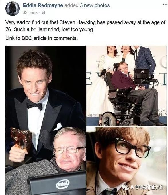 实在是太多人纪念他了,这些纪念和爱就像潮水般涌来,但我还是想通过另外一个人,英国男演员埃迪·雷德梅恩和他的作品来纪念霍金。