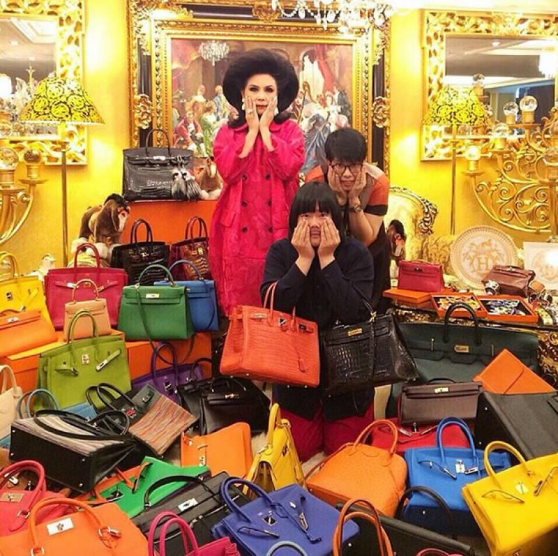 炫爱马仕炫成名人的,还有这对画风清奇的泰国母子。他们家的爱马仕,可能是成斤买的。