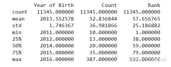 df = pd.read_csv('Popular_Baby_Names.csv', sep=';', header=0, index_col=0, skiprows=5, na_values='N/A')