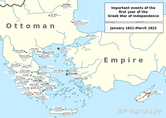 希腊独立战争于1821年3月爆发,这场起义是经过长期准备与筹划、看准时机而发动的,且具有鲜明的民族特色,宗教自然也在其中扮演了重要角色——因为希腊的教会本就与民族密切相关——但其民族性无疑大于宗教性,希腊人决定反抗一个虽然衰落,但仍有着摩里亚的村民们无法想象的庞大领土、人口与封臣的帝国,希腊文明旧日的辉煌已经远去,如今必须浴血重生,这场战争将开创性的改变东南欧乃至欧洲的政治格局,也向世人展示了巴尔干——这个火药桶的野蛮与血腥。