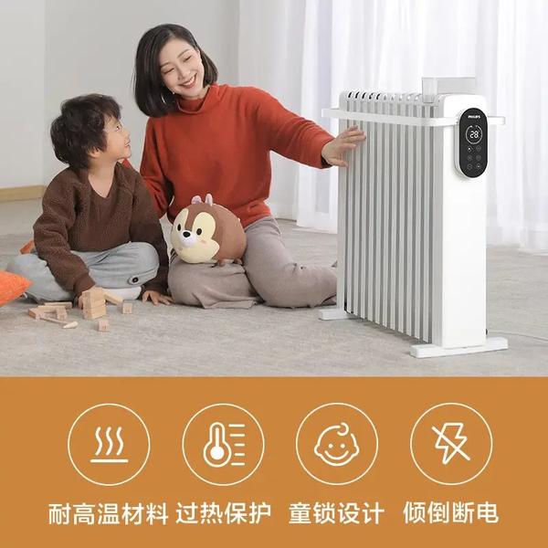 油汀无光噪,休息使用也不扰人,还有倾倒断电、过热保护等安全防护功能,安全系数高。