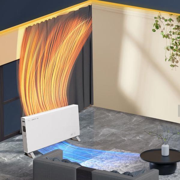 踢脚线取暖器主要通过空气热对流的原理,当加热片遇上空气时,热空气将往上升,下面的冷空气又会自动补充移动后的空气,通过不断循环,可以达到恒定的温度,可以根据自己的需要放在室内任何角落。无需等待,开启即热,只要半个小时全屋都可以感到温度。
