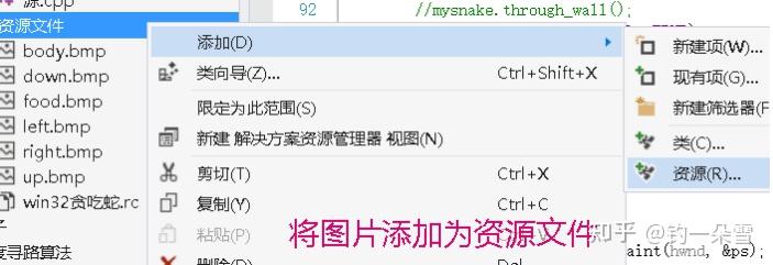 需要准备表示食物、蛇的头部和身体的图片,图片的格式为bmp。