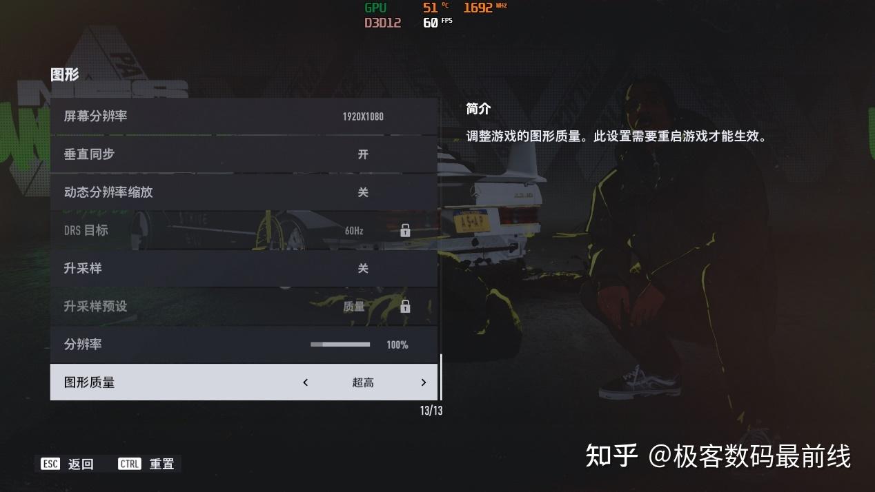 处理器为i7 12700,3600双通道16G内存,图像质量我们选择“超高”方案,以“街头赛”为测试场景,并用AMD驱动记录下期间的帧率变化,以最后的平均帧率作为最终对比参考。