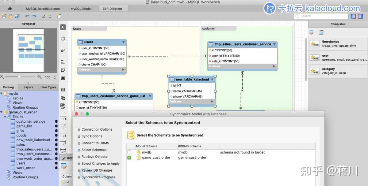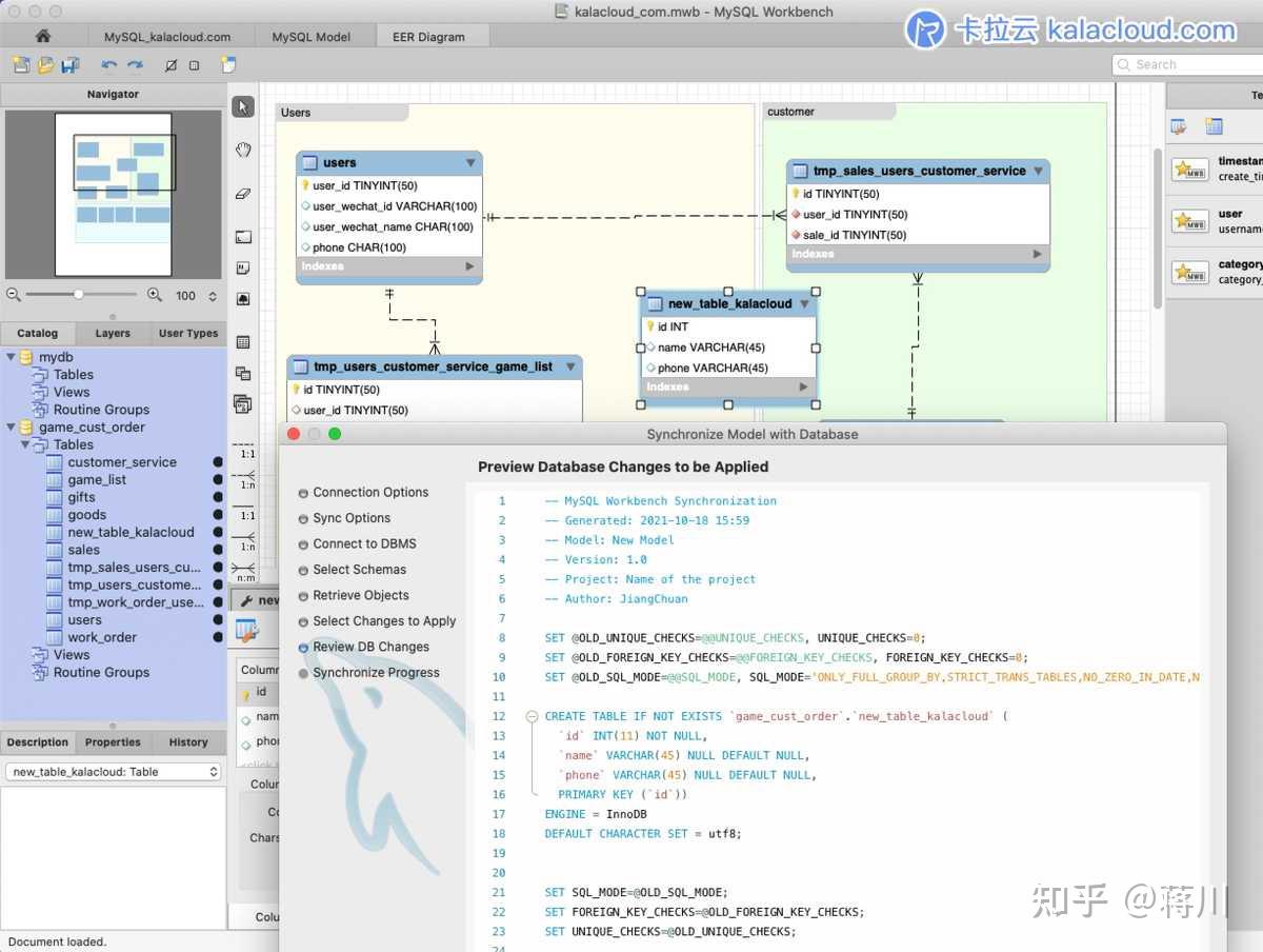 更厉害的是,Workbench 有模式同步功能,即我们在本地修改了 ER 图后,Workbench 会把我们修改的部分同步到物理数据库中,这是在免费数据库 GUI 管理工具当中,是非常少见的杀手锏级的功能。