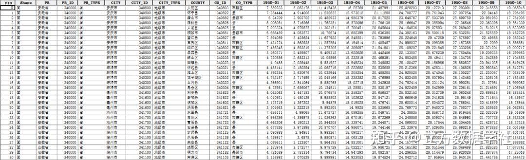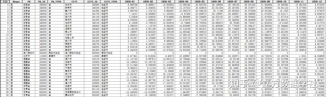 基于原始的逐月气温栅格数据,我们对每个省\每个地级市\每个区县内的栅格值进行了求平均数处理,得到了省市县三级的逐月平均气温!省市县行政边界数据来源于“数读城事”公众号!