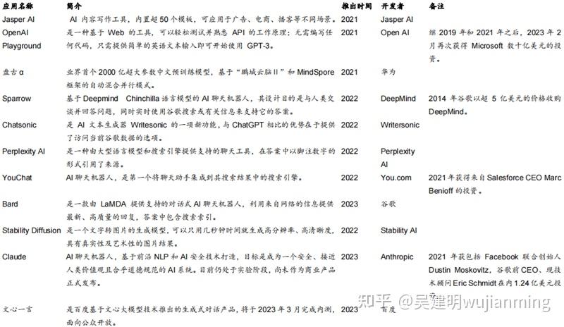 谷歌、百度积极跟进,商业应用有望加速。1 月 27 日,美国数字媒体公司 BuzzFeed 率先宣布计划使用 OpenAI 提供的技术来协助创作个性化内容。谷歌方面,近期向 OpenAI竞争对手之一的 Anthropic 投资约 3 亿美元,获得该公司 10%股份,Anthropic 将用投资从谷歌的云计算部门购买大量计算资源;2 月 6 日,谷歌透露计划推出一款聊天机器人 Bard 以应对 ChatGPT,该服务将开放给受信任的测试人员,并在未来的几周向更广泛的公众开放服务。百度方面,2 月 7 日宣布将推出类 ChatGPT 项目文心一言(英文名为ERNIE Bot),预计将在 3 月份完成内测,面向公众开放。随着微软将 ChatGPT 整合至自身产品中,谷歌、百度等 AI 领军企业也宣布推出聊天机器人,未来有望将聊天机器人整合至搜索引擎甚至办公软件等业务当中,商业化应用有望加速落地。